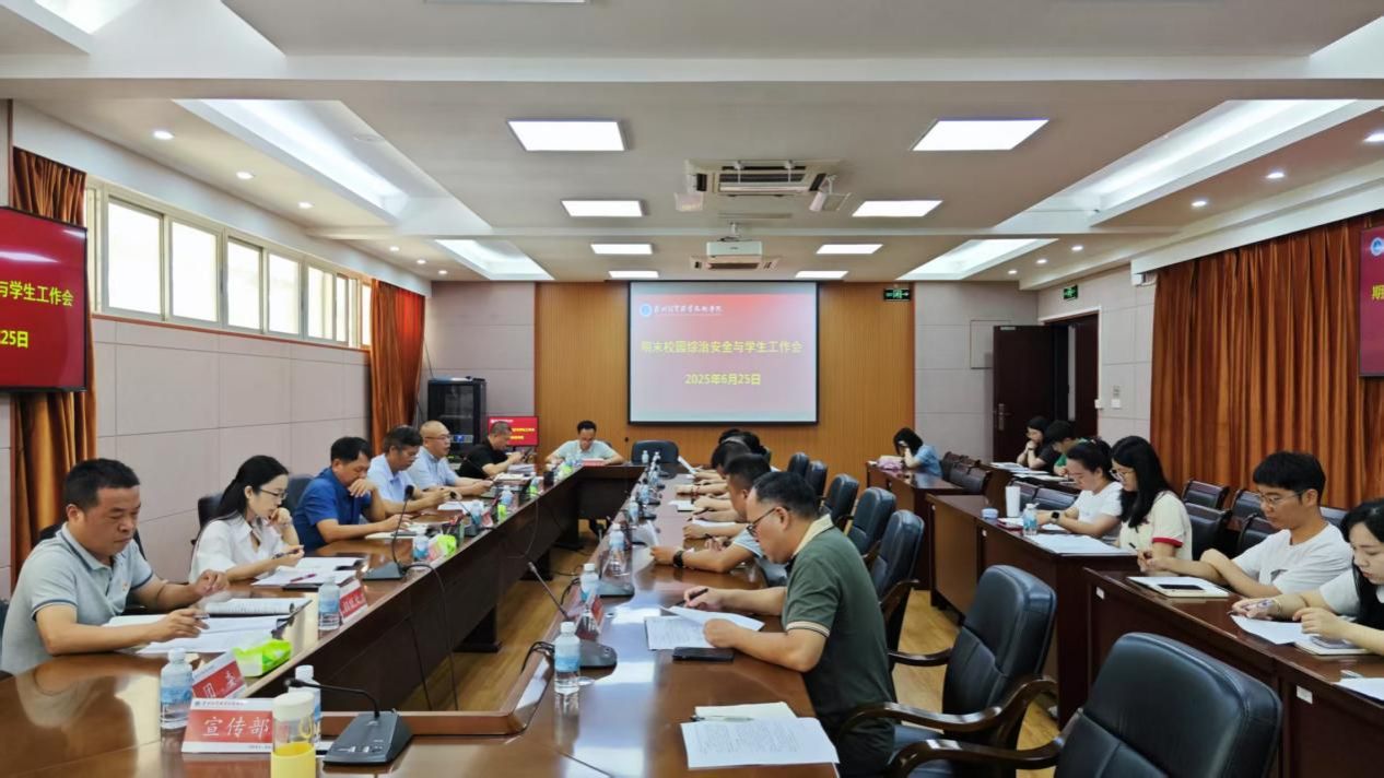 花文苍指出,在全校师生的共同努力下,上半年校园安全总体平稳有序。针对期末及暑期安全,他要求:一要筑牢安全防线,开展期末校园安全大检查,建立隐患整改闭环机制。二要深化安全教育,各学院要召开专题班会,重点做好防溺水、防诈骗和交通安全等教育。三要强化消防管理,学生离校前全面排查宿舍安全隐患,确保不留死角。