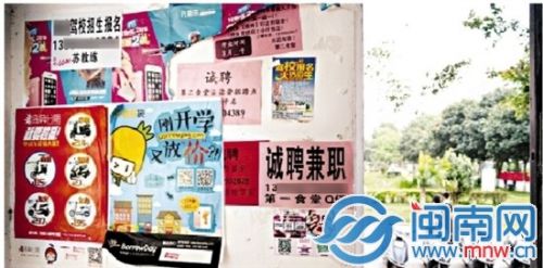 “最近学校内这类小广告基本没了,一般只会贴在厕所等比较隐蔽的位置。”泉州经贸学院学生小丽告诉记者,以前有人直接把小卡片派发到宿舍,在发布贷款内容的同时,也会发布“招聘校园代理兼职”的广告。